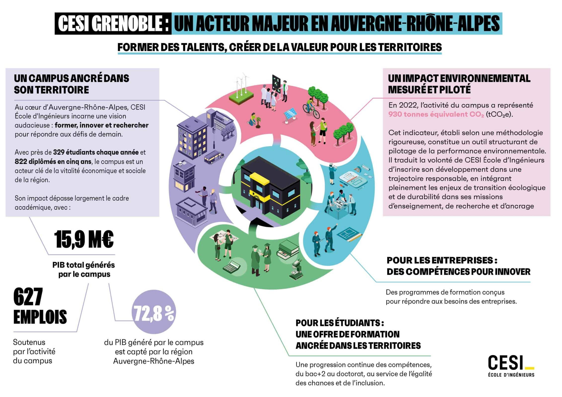 Une étude inédite, menée par le cabinet UTOPIES avec l’outil Local Footprint®, révèle aujourd’hui l’ampleur de cet impact au niveau national et local : 927 M€ de PIB générés, plus de 36 000 emplois soutenus en France. Dans la région Auvergne-Rhône-Alpes, avec les campus de Grenoble et de Lyon, près de 76,5 millions d’euros de PIB sont générés annuellement et plus de 2 956 emplois soutenus à l’échelle de la région.